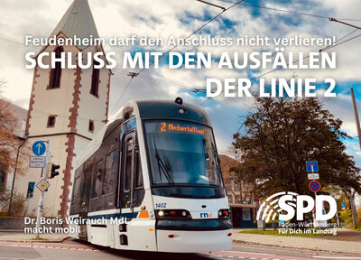 Mit Blick auf die dauerhaften Ausfälle und die angekündigte Umstellung auf den 20-Minuten-Takt der Linie 2 von Feudenheim in die Neckarstadt macht der SPD-Landtagsabgeordnete Dr. Boris Weirauch unmissverständlich klar: „Die Schmerzgrenze der Bürgerinnen und Bürger ist erreicht – die rnv muss zurück zur 10-Minuten-Taktung!“